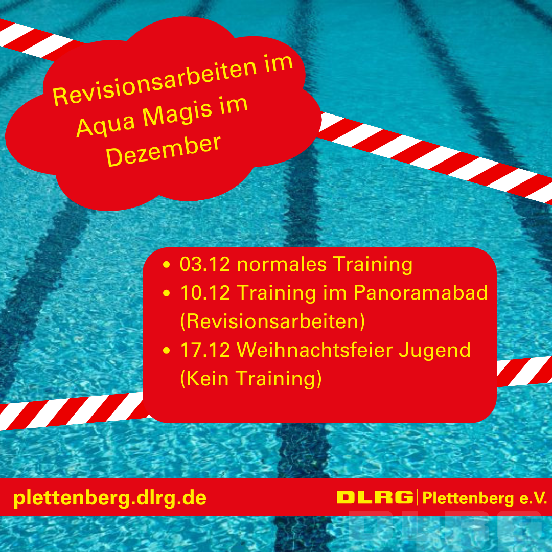 Hier die Trainingszeiten im Dezember wegen den Aqua Magis Revisionsarbeiten 2025
